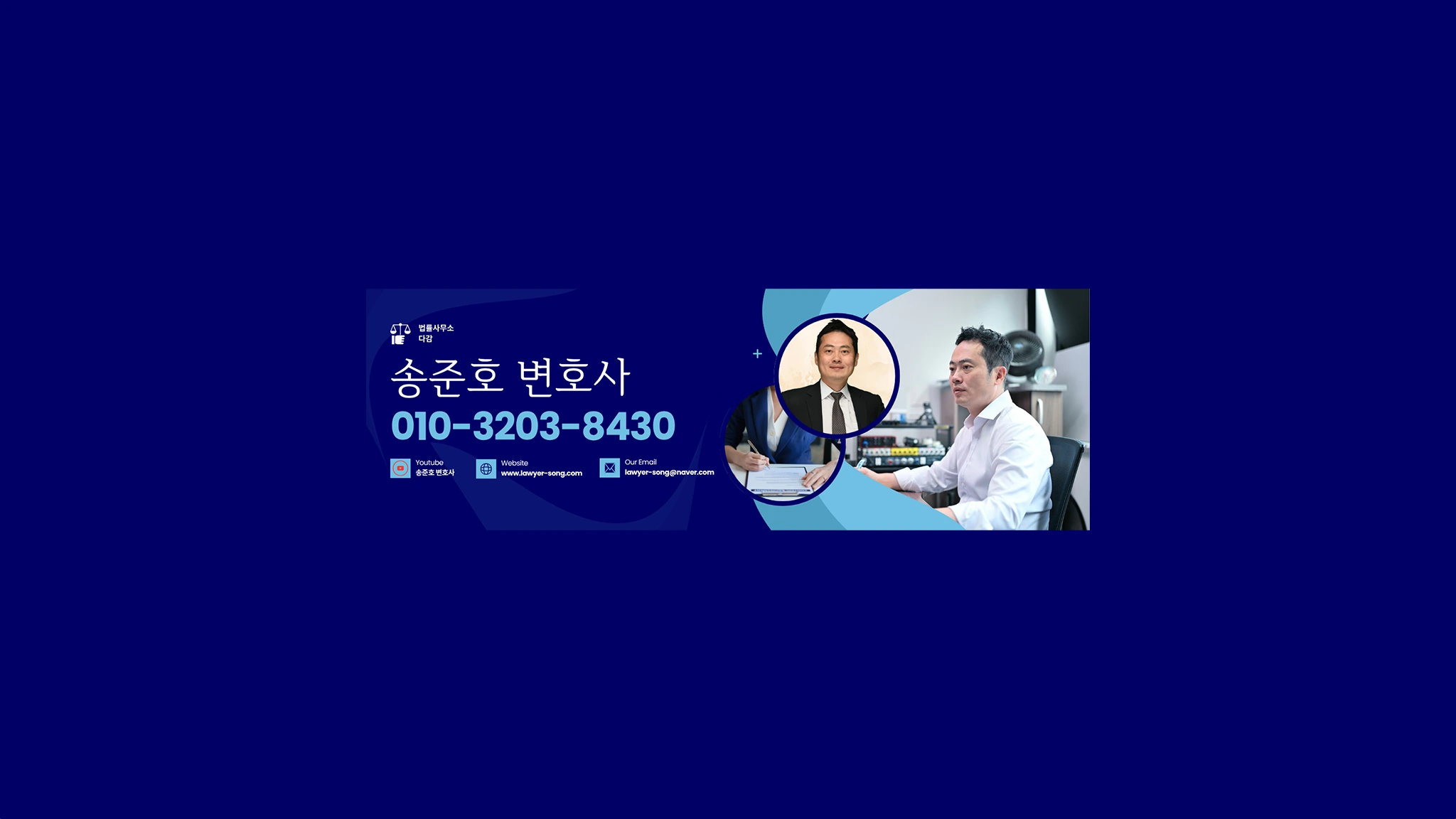 ★법률상담 안내★ 전화: 010-3203-8430 ★약 력★ 고려대학교 컴퓨터학과, 법학과 졸업 제53회 사법시험 합격 제43기 사법연수원 수료 ★언 어(available language)★ : English, Korean ★자격증(certification)★ -변리사 -전기기능사 -건설기계조종사면허(굴착기, 지게차, 로더) ★SNS★ 인스타그램: https://instagram.com/songjunho24 블로그: https://blog.naver.com/lawyer-song 이메일: [email protected]