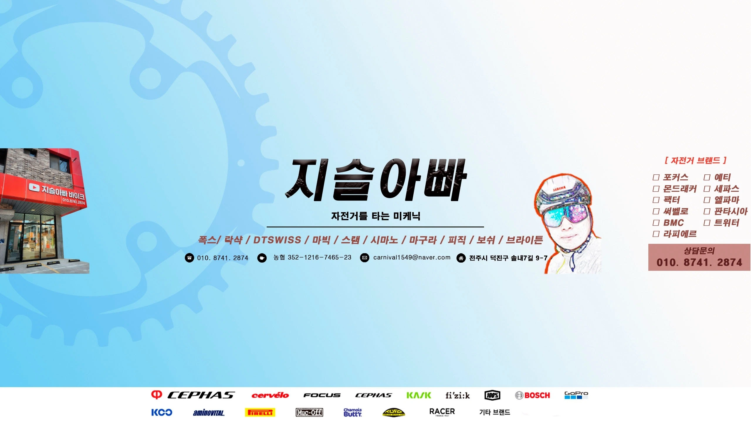 자전거?! 아니!! 뭘 그리 고민하고 주저하십니까?🙄 그냥 오랜 친구같이 편안하게 연락하세요🙋♂️ 지슬아빠한테 자전거 구입 안하셔도 되니 궁금하신건 뭐든 말씀만 하세요👌 제가 알고 있는 모든 것을 퍼드리겠습니다😊 ------------------------------------------------------------ 샬롬, 지슬아빠입니다. 제가 자전거 사업을 하는 이유는.. 먹여 살려야 할 애들이 많아서에요~ㅎㅎ 🧡셋째를 천국으로 보내고😭 💙31명의 아빠가 되었어요🥰 아이들을 먹여🥖살리기 위해 🚲 열심히 사업해요👏 🤎이 아이들은 셋째와 바꾼 진짜 내 자식들이니까요👨👩👧👦 그래서 애들 이름을 걸고 정직하게 사업합니다. 저는 지식으로만 자전거를 소개하고 판매하는 것이 아니라 직접 조립,셋팅해보고 라이딩하면서 장단점을 정확하게 알고 진실한 마음으로 소개해 드려요 직접 타보고 몸으로 느껴봐야 제대로 된 정확한 정보를 알려드릴 수 있기 때문이