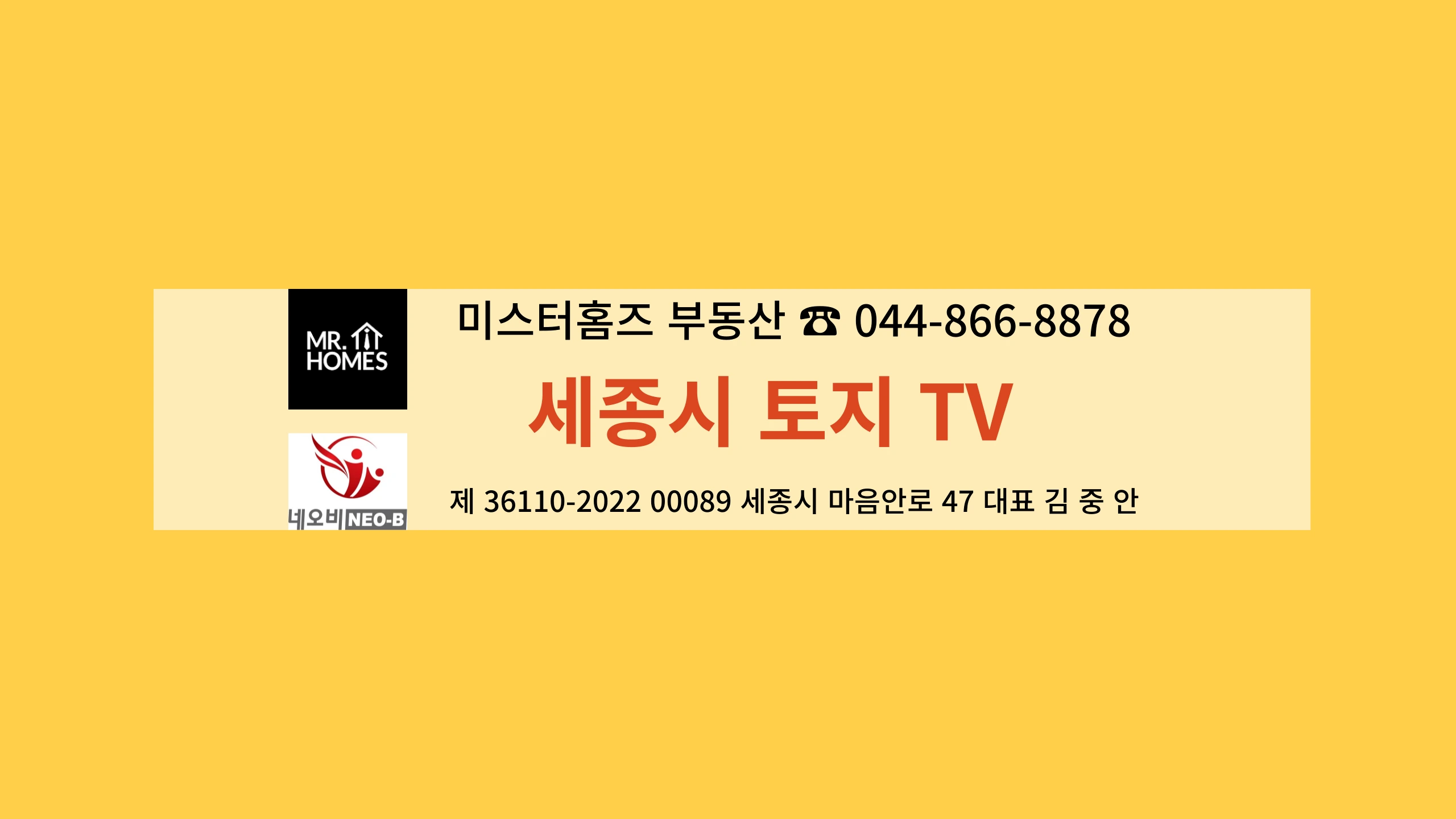 미스터홈즈 세종토지전문센터 TV 는 세종토지 전문채널 입니다. 세종시 전역 다량의 매물을 보유하고 있습니다. 토지투자 및 토지 컨설팅에 관한 궁금한 사항이 있으시면 언제든지 문의해 주시기 바랍니다. 상 호:미스터홈즈 부동산중개 세종토지전문센터 주 소:세종시 마음안로47 전화번호:044-866-8878 등록번호:36110-2022-00089호 성 명:김 중 안 ☎ 010-3956-8829