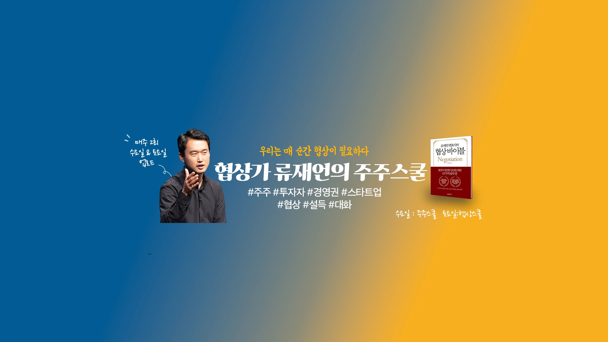 스타트업, 주주권, 경영권분쟁, 협상, 설득, 대화에 대해 이야기 합니다. '류재언 변호사의 협상 바이블'과 '대화의 밀도' 저자이며, 8년간 세바시 협상스쿨을 운영해왔습니다. 경영권분쟁 및 스타트업 전문 로펌 법무법인 율본의 대표 변호사입니다. [협업문의 및 SNS] 이메일: [email protected] 인스타그램 https://www.instagram.com/ryoo_jaeeon/ 브런치: https://brunch.co.kr/@jaeeonryoo
