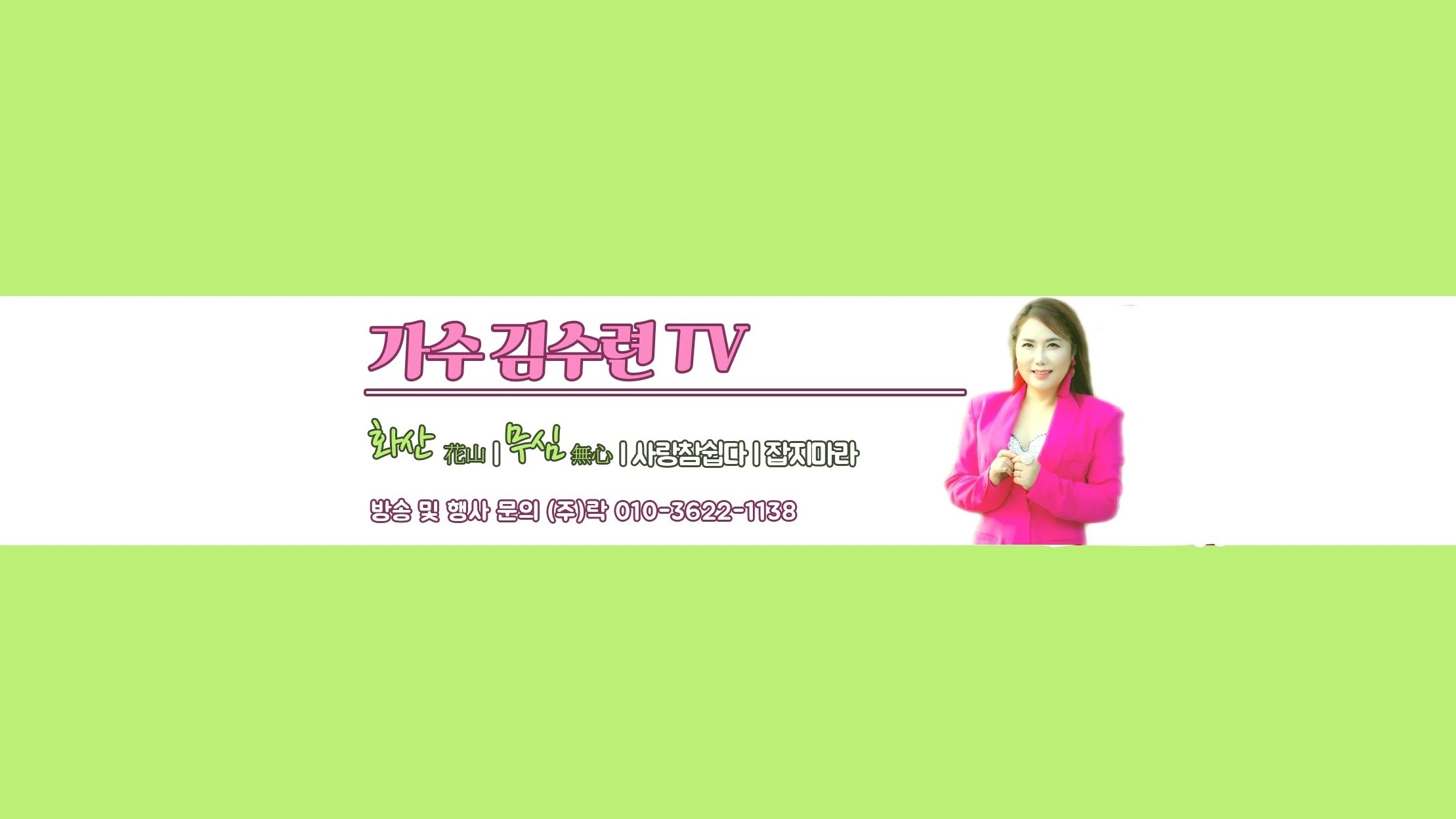#MBN보이스퀸 #KBS2TV_도전주부가요스타_2008년3월퀸 출신 "화산(花山), 무심無心,잡지마라, 살다보면, 사랑 참 쉽다, 하늘에 둥실" 가수김수련 채널입니다. 계좌응원 국민 김수련 563 802 04 034984 ● 2012대한민국문화예술대상 신인상 수상 ●2025 대한민국 연예예술상 베스트가수상 수상 ● 현(사)한국신장장애인협회 홍보대사 ● 현(사)한국웅변단체총연합회 홍보이사 ● 2009년 1집 “하늘에 둥실” 데뷔 ● 2011년 2집 “사랑 참 쉽다” ● 2014년 3집 “살다보면” ● 2014년 "김수련의 최신 히트가요"메들리 음반 ● 2016년 4집 "화산(花山)"/싱글 ● 2020년 5집 "잡지마라"/싱글 ● 2021년 6집 "사랑도이별도"/싱글 ●2023년 7집 "무심"/싱글 ▶ 2020 "전국노래자랑40주년특집 출연 ▶현) 부산 KBS 3시에 어디가요 ▶전) KBS1TV "아침마당" 패널 ▶전) 광주KBS1TV "열린마당" 고정패널 ▶전) 여수MBC라