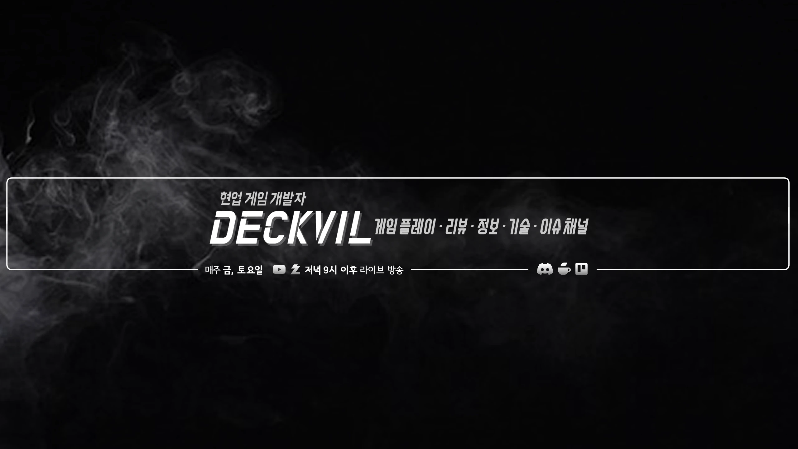 안녕하세요. 데크빌 채널에 방문해주셔서 감사드립니다. 방송 및 콘텐츠 진행을 맡는 데크빌은 현업에서 10년 이상 게임을 개발하고 있는 프로그래머이며, 저희 채널은 유저 입장에서 게임 플레이 및 리뷰, 공략 등과 개발자 입장에서 게임의 분석, 기술적인 설명, 직접 개발 중이거나 출시한 게임의 정보 공유 등 게임 관련 모든 이슈를 다루는 종합 게임 전문 채널입니다. 정기 방송은 매주 토요일 오후 9시 이후에 진행합니다. (유튜브, 치지직 동시 송출) 추가 방송 일정은 매주 일요일에 하단의 링크에 첨부된 일정 공유 사이트 (Trello) 에 업데이트 하고 있으니 시청에 참고 부탁 드립니다. 주요 실시간 방송 원본 영상은 하단의 링크에 첨부된 데크빌 다시보기 Youtube 채널에 업데이트 하고 있으니 많은 시청 부탁 드립니다. 게임 관련 콘텐츠 진행 요청 및 건의는 하단의 링크에 첨부된 Discord, Cafe 또는 유튜브 댓글 등 편하신 경로로 전달해주시면 일동 모두 콘텐츠