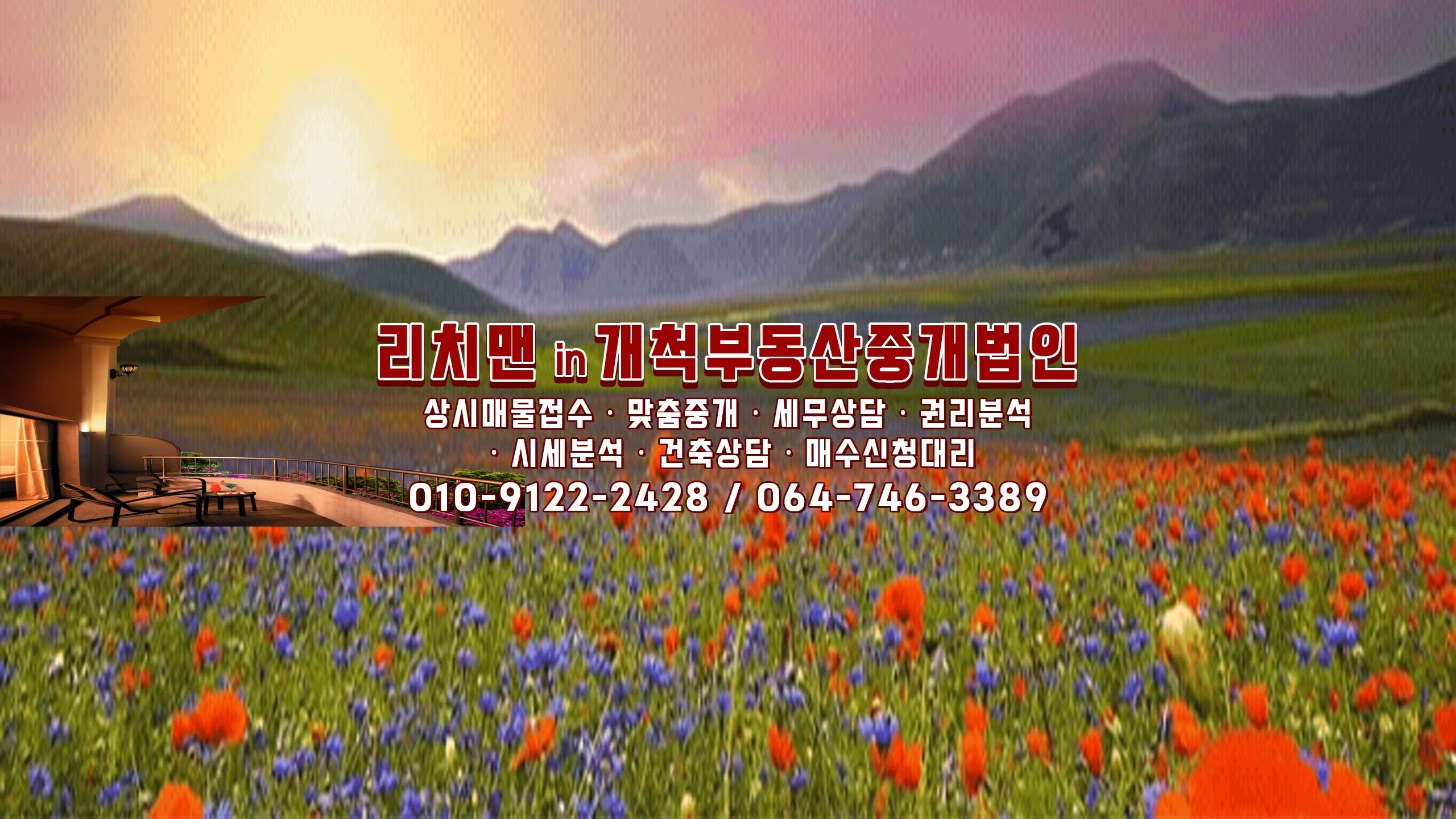 상시 매물접수ㆍ맞춤중개ㆍ세무상담ㆍ권리분석ㆍ시세분석ㆍ건축관련문의ㆍ매수신청대리 ♥️㈜개척부동산중개법인(등록번호: 라-4402-25) ♥️소재지: 제주특별자치도 제주시 과원로59, 1층(연동) ♥️대표공인중개사: 강동학 ♥️대표전화: 064-746-3389 ♥️모바일폰: 010-9122-2428 ♥️비즈니스문의: [email protected] ♥️리치맨 채널 VIP 멤버십에 가입해 주세요! https://www.youtube.com/channel/UCn5H3GrFBU_mIoAPDI8V77Q/join