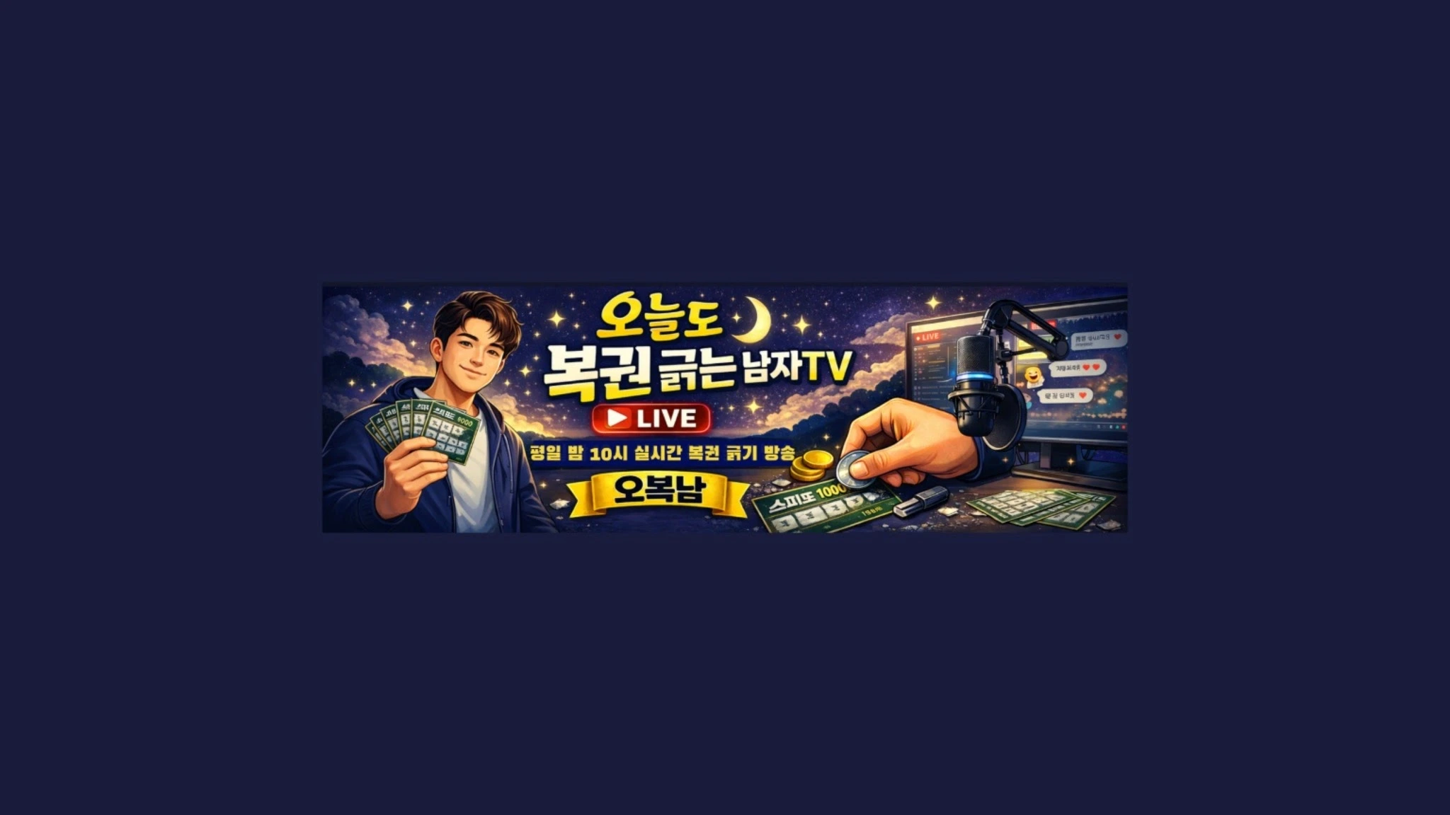즉석복권(스피또) 라이브 방송 채널입니다. ☆방송시간☆ 월~목 일 밤 9시 금토 휴방 매일 즉석복권을 긁으며 **‘언젠가 올 1등의 순간’**을 향해 차분히, 꾸준히 도전하는 채널입니다. 소소하지만 확실한 설렘, 복권을 긁을 때 들리는 시원한 ASMR 소리, 그리고 라이브에서 함께 나누는 가벼운 수다까지. 결과보다 과정의 재미를 즐기고, 하루의 피로를 잠시 내려놓을 수 있는 편안한 라이브 방송을 지향합니다. 🎟️ 주 5~7일 라이브로 시청자와 소통하며 직접 긁지 않아도 느껴지는 대리만족과 설렘을 전해드려요. 💡 당첨이 발생할 경우, 작은 기부로 이어지는 선한 소비 문화를 지향하며 과도한 사행성을 조장하지 않습니다. 평일 저녁 9시 라이브, 편하게 들러서 보고, 듣고, 이야기하다 가세요. 1등이 나오는 그날까지 함께 천천히 달려봅시다 🙂 #즉석복권 #스피또 #복권라이브 #즉석복권ASMR #소통방송 #라이브방송 #대리만족 #소확행 #매일라이브 비즈니스 문의