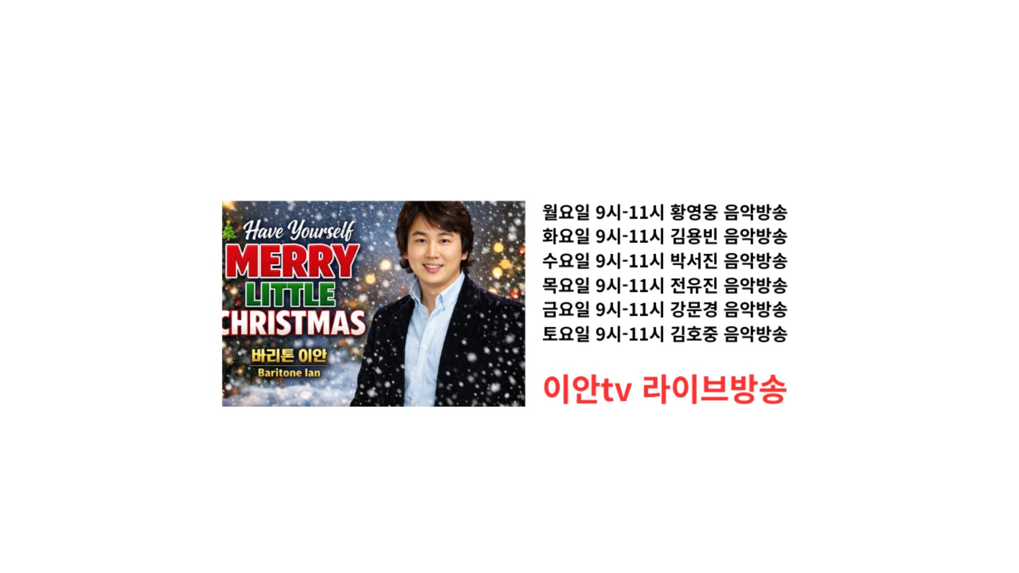 이안(성악가,지휘자,연출가) 러시아 우파국립예술대학 음악원 합창지휘과 최고연주자과정(연주학박사)수료 러시아 우파국립예술대학 음악원 성악과 최고연주자과정(연주학박사)졸업 한국예술종합학교 예술전문사과정 오페라과 졸업(전공 오페라연출) 모스크바 Institute of Russian Theater 졸업 (Diplom) 로마 A I D M 아카데미아 졸업 전 러시아 성악콩쿠르 1위 제 5 회 대한민국 오페라대상 월전문화재단상 수상 2020 제28회 대한민국문화연예대상 '뮤지컬교육자상'수상 2021 서울시의회의장상수상(국제교류부문) 2023대한민국 교육산업대상 클래식대중화부문 수상 2024 SSO국제콩쿨 지휘부문 대상,국회의원상 수상 2024 뉴질랜드 세계합창대회 서울푸르나메합창단 은상수상(지휘 이안) 2024 노원구청장 표창장 수상 2025 국제장애인문화교류협회 표창장수상 작품출연 뮤지컬 오페라의유령 (팬텀역,라울역커버 및 앙상블) 뮤지컬 정조대왕 (정조역) 뮤지컬 프린세스낙랑(호동왕자