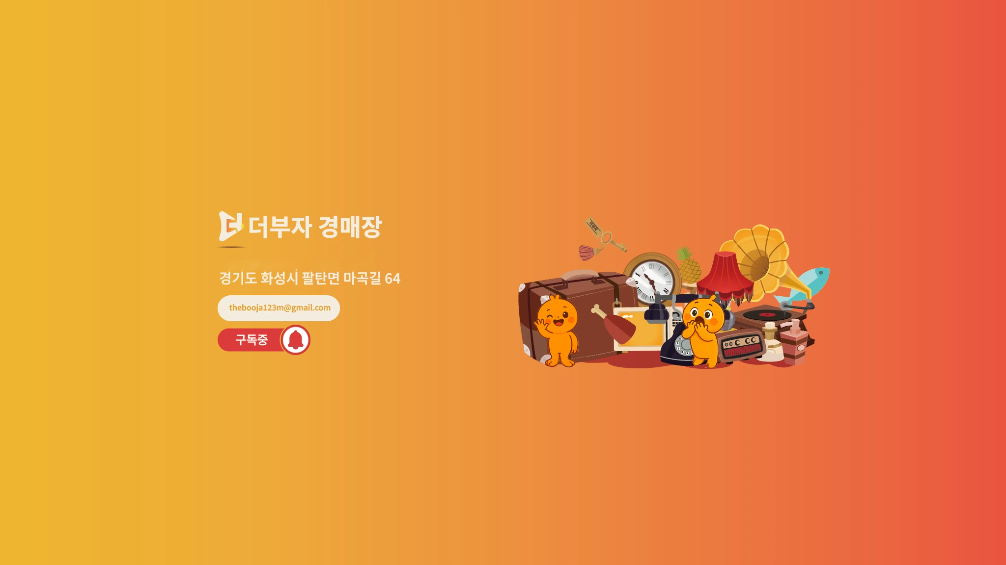 🎉 안녕하세요 🎉 💰︎더부자 경매장💰︎에 오신 여러분을 진심으로 환영합니다. 저희 여러분과 함께 더 나은 친환경적인 삶을 만들어가고자 합니다. 💰︎더부자 경매장💰︎에서는 다양한 생활용품과 골동품을 경매를 통해 소개합니다. 최고의 명화들과 골동품, 그리고 물가 파괴 ! 재미는 물론이고 득템의 기회까지! 저희 더부자 경매장에서는 반려동물 동반 입장이 가능합니다. 소중한 아이들과 뜻깊은 하루를 보내보세요 🐾 더부자는 친환경적인 소비 문화를 함께 만들어가는데 최선을 다하고 있습니다.🌿 여러분의 참여와 응원이 우리의 원동력이 되어줍니다. 항상 여러분의 목소리를 듣고, 함께 성장해 나갈 것을 약속합니다. 구독과 좋아요를 눌러주시면, 더부자의 다양한 이벤트와 소식을 받아보실 수 있습니다. 💌더부자 SNS: https://linktr.ee/thebooja 💌더부자 공지사항 및 안내문: https://blog.naver.com/thebooja_/223427118