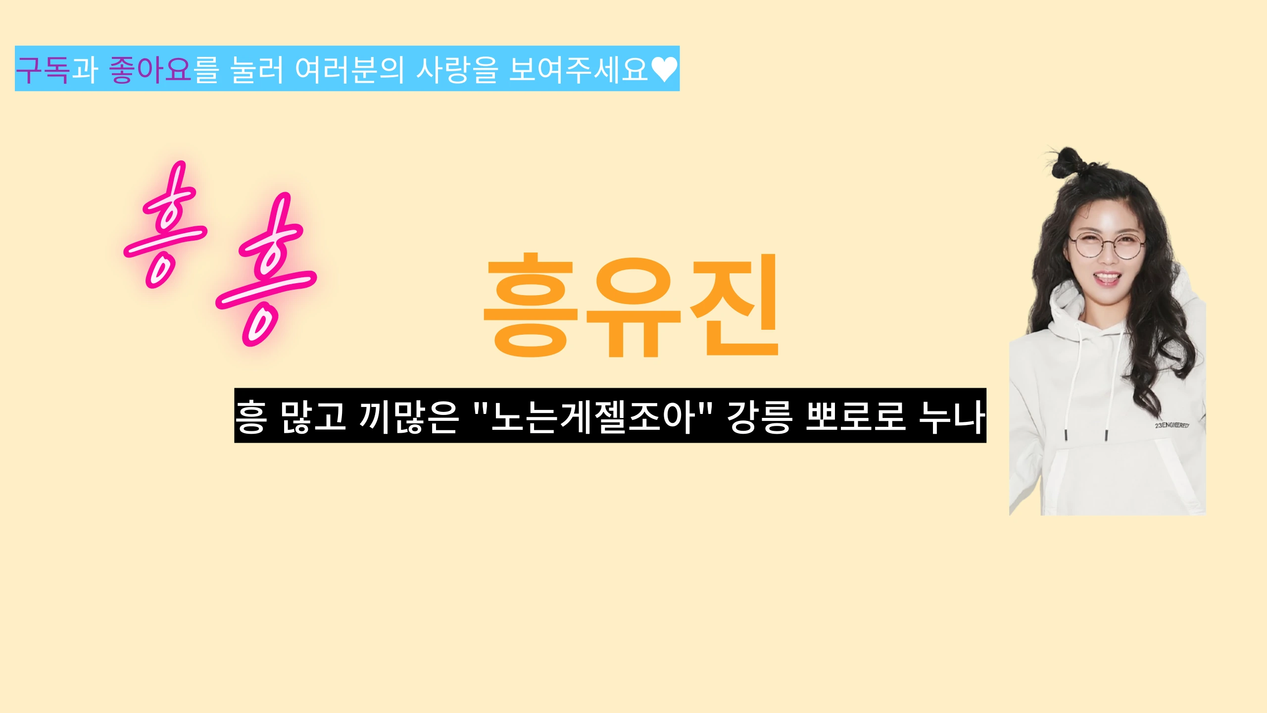 흥 많고 끼 많은 “노는게젤조아“ 강릉 😤흥😤유진🎤 남동생이 맨날 “친구들 모여라!!”하면서 놀러만 다닌다고 뽀로로누나래요>_< 흥이 많아서 여러분께 나눠 드릴게요~!! 우리 같이 놀아요~^^ 주로 제가 노래하고 춤추고 놀고 먹고 하는 일상을 담은 채널이구요~ 틈틈이 노래연습 하고 있으니까 많이 격려해주시고 아낌없는 조언 부탁드릴게요!!! 재밌으면 구독❤️과 좋아요👍를 눌러주세요~ 알림🔔설정도 해주시면 더더더 좋구요^^ “좋”아요는 익명이니까 마음껏 눌러주세요!! “댓”글을 남겨 주시면 다녀간 흔적을 제가 알 수 있어요^^ “구”독을 하시면 저의 컨텐츠를 나중에도 찾아 보시기 쉬워요~ “알”림 설정을 통해 라이브 방송에서 실시간 만나 보실 수 있어요!! 오신 분들 모두 흥!!!하세요~~ 모두가 즐겁고 행복해지는 그날까지^———^ 업데이트는 계속됩니다 ㅋㅋㅋ 여러분의 사랑과 관심이 필요한 나이랍니다~ E-Mail : [email protected] 카카