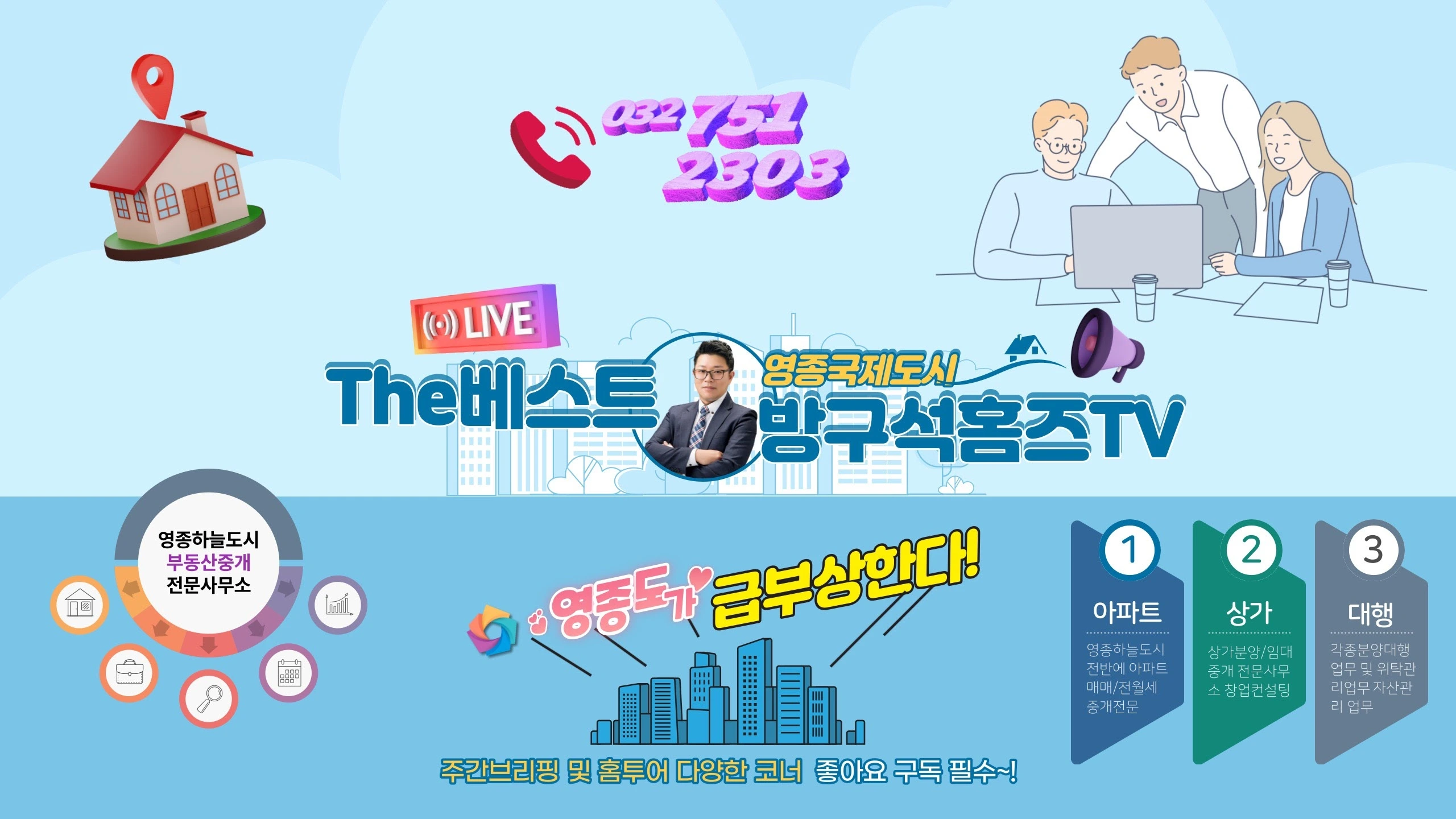 영종국제도시 부동산채널 방구석TV /다양한 부동산정보와 분양소식 영종최고의 전문가들로 구성된 The베스트부동산 에서 운영하는 채널로 아파트/상가/토지/오피스텔/주택 등 다양한 투자상담 및 맞춤형 컨설팅진행 ...영종에서 오랜시간 신뢰를 바탕으로 쌓아온 노하우와 경험을 바탕으로 펙트 중심의 정보들로 영종 최고의 전문중개사무소 입니다 문의 032-751-2303 [email protected]