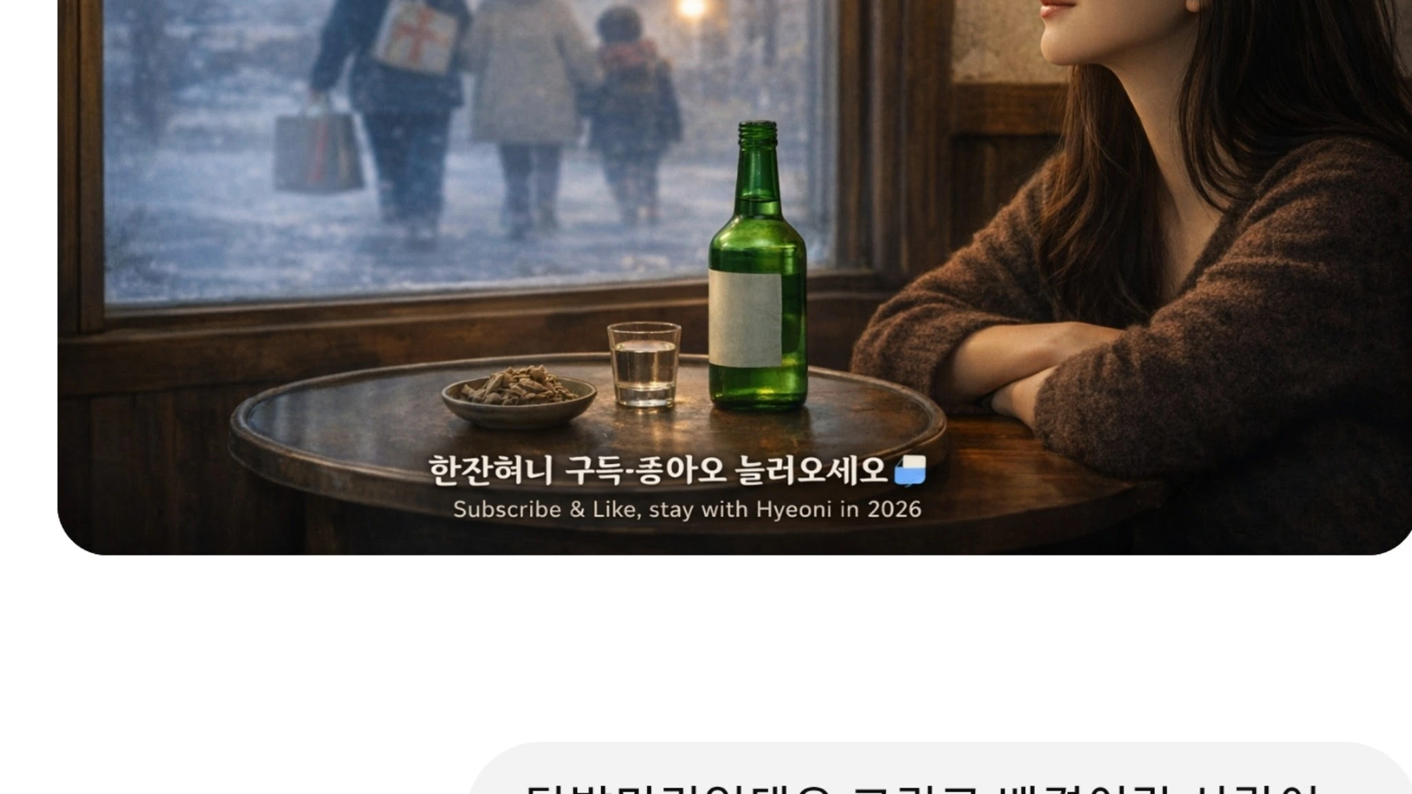 화려했던 시간도, 무너진 시간도 다 우리의 이야기입니다. 나만의 혼술시간... 한잔혀니 술잔속 나를 만나다... 🍶 한잔혀니와 오늘도 인생한잔🍶함께 하실래요? 47세에 인생포기녀 개백수 노처녀 🐶🙅♀️🤷♀️ 집🏠 차🚗 돈💵 없음 🚫🚫🚫 얼굴❌️ 몸매❌️ 성격❌️❌️❌️ 보잘것 없지만 저의 일기장 같은곳입니다 화려하고 완벽을 추구하는곳 아니예요 같이 성장할까요? 저와 친구할래요? 한잔혀니 구독🍶조아요 많관부💚 Even the glamorous times, even the times that fell apart, they’re all our story. My personal solo-drinking time… Hanjan Hyoni Meeting myself through a glass 🍶 Would you like to share a drink of life with me today? 🍶 47 years old, life-giv