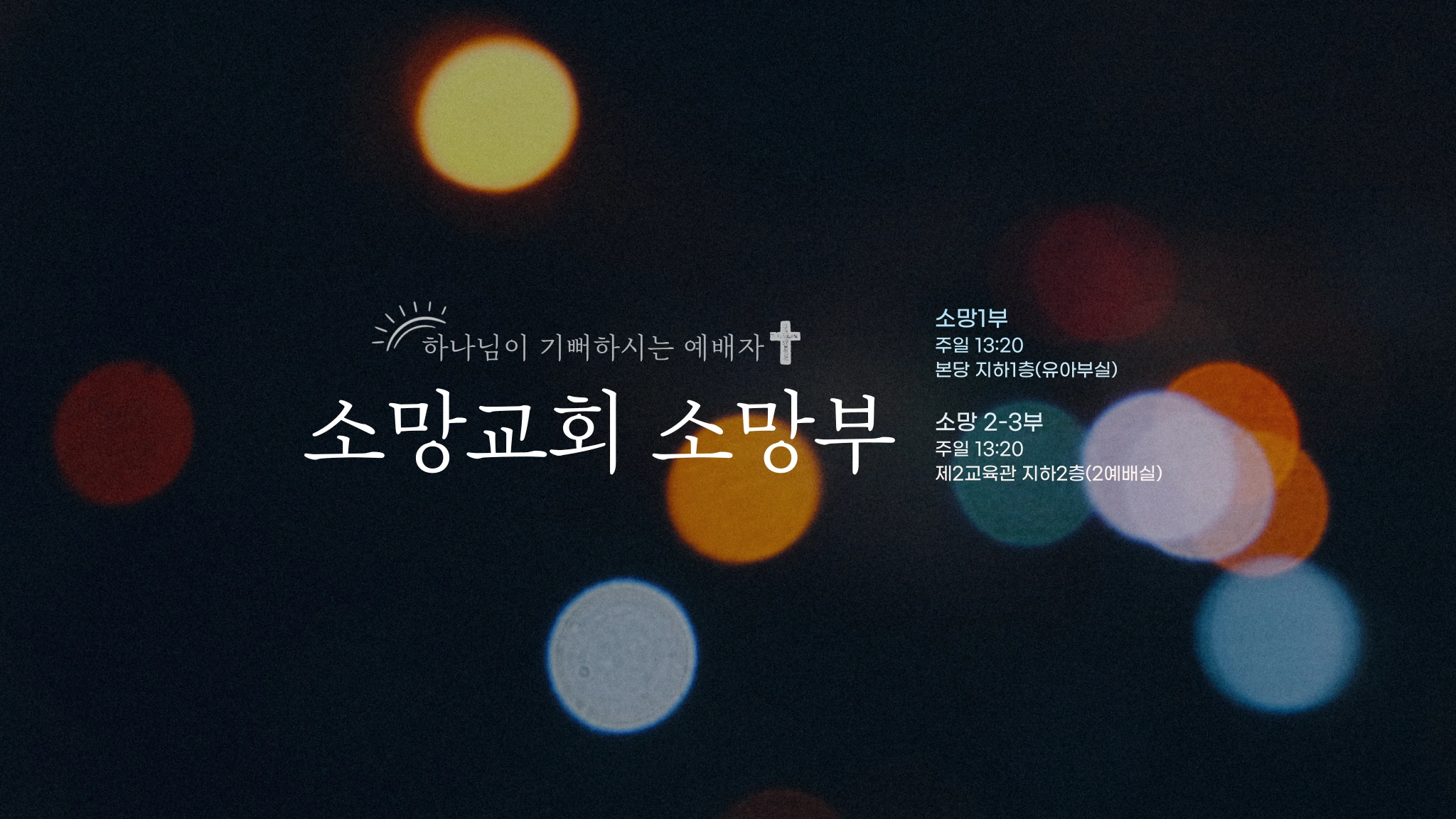 소망교회 소망부는 1984년에 설립한 한국 최초의 발달장애인부서입니다. 어린이부터 노년에 이르기까지 다양한 연령의 발달장애인들이 하나님을 뜨겁게 예배하고 있습니다. 06023 서울특별시 강남구 압구정로 36길 55 (신사동) 매주 주일 오후 1시 20분 소망1부 : 본당 지하1층 유아부실 소망2,3부 : 제2교육관 지하2층 예배실 https://www.somang.net