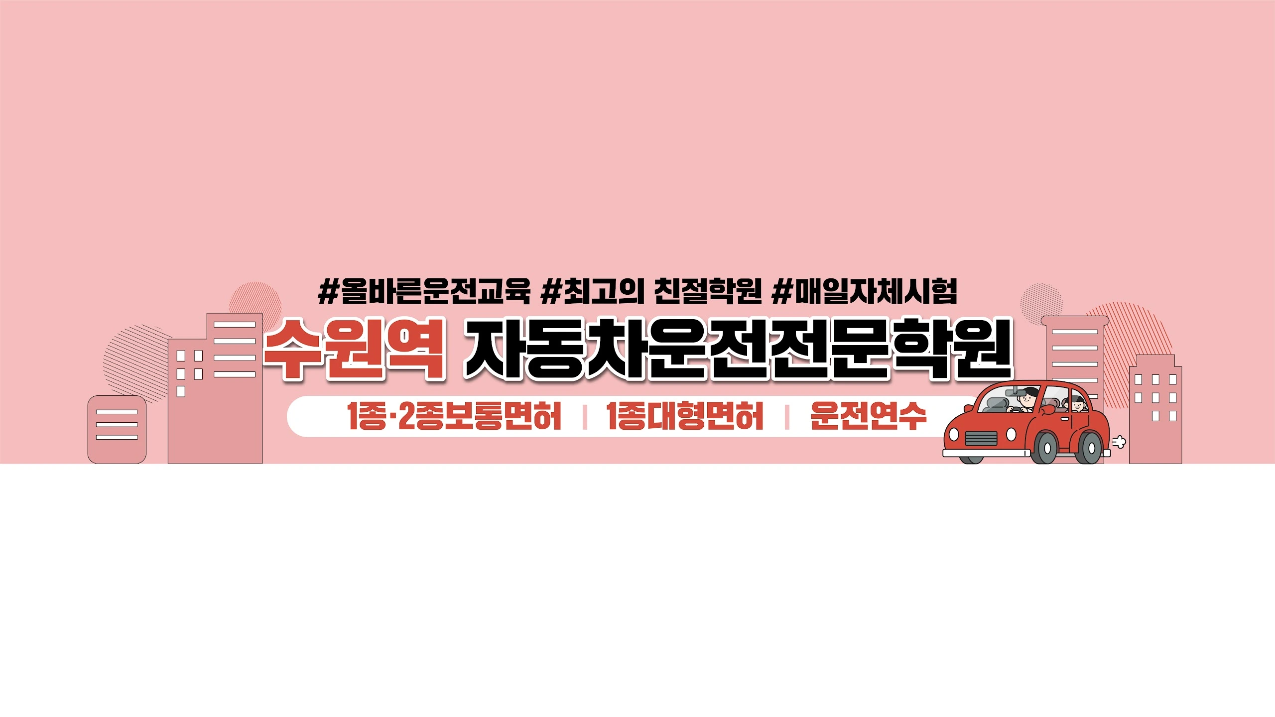 운전학원은 '면허만 따는 곳?' 이젠 부족합니다! 제대로 배우고, 편하게 합격하고 싶다면 '기준이 다른' 수원역자동차운전전문학원에 주목해보세요. 수천 명이 선택한 이유, 지금 확인해보세요. ['올바른' 전문성의 기준] 수원역자동차운전전문학원은 국내 최초로 교습 방법을 표준화한 운전교육기관입니다. 강사마다 교육 품질이 다르다? 이곳은 해당 되지 않습니다! 누구나 동일하게, 정확하게, 효과적으로 배울 수 있는 표준화된 커리큘럼을 제공합니다. 1종대형, 1.2종보통, 2종소형오토바이, 원동기면허, 종별전환, 장롱면허 연수, 면허취소자 재취득까지 모든 과정이 체계적이며, 학원 내 자체시험도 매일 운영되어 내가 연습해온 익숙한 환경에서 누구나 바로 합격할 수 있습니다. [올바른 '친절함'의 기준] '말투 불친절하고, 무시당하는 느낌?' 이제 그런 학원은 그만! 수원역자동차운전전문학원은 [불친절 제로 시스템]을 운영합니다. 수강생 대상 설문조사로 불친절 사례를 철저하게 점검하여 '반
