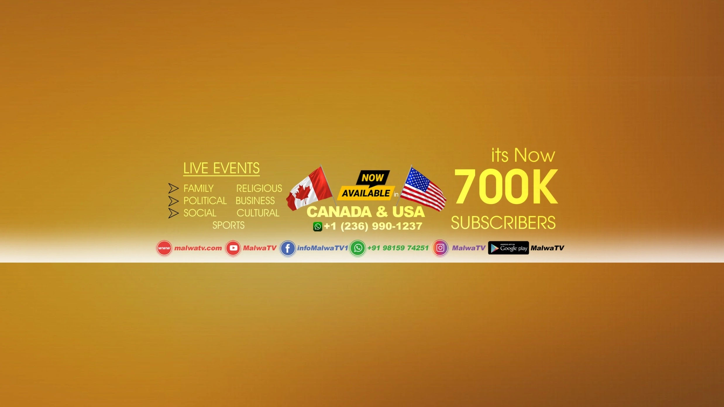 Facebook : https://www.facebook.com/infomalwatv1 Andoride App : https://bit.ly/3oHd16X Sporting Events : Any sports event such as Kabbadi, Football, Cricket can be webcasted LIVE on Malwa TV. Events are available to audiences worldwide. Marriage Ceremony / Private Event If you have family event that you would like to share with your friends & family who are unable attend the function. Our live service will make sure your family can be part of the celebration as well. Mobile Devices All our events can be made available on any mobile device if desired. Malwa TV Management https://www.malwatv.com Digital Partner - Kiratent [http://bit.ly/2CejPyA]